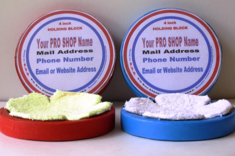The HOLDING BOCK Is a circular tool that fits in the palm of your hand. This tool is used for cleaning, polishing and buffing. The back of this tool will have your name and how to use on it. The working side has VELCRO (male) that receives VELCRO (female) backed terrycloth, MicroFiber pads. The 'CLEANING MACHINE' comes with two (2) terrycloth and two (2) Microfiber pads. These pads can be used wet or dry and are washable. DO NOT use fabric softener on any of the pads. Replacement pads are available. Scuff pads for 4 *CLEANING MACHINES* are Available.